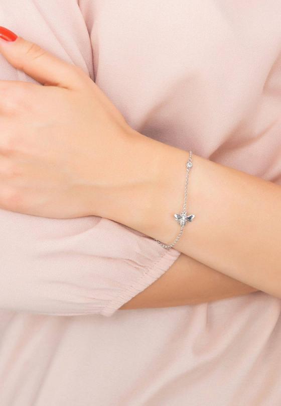 Design: “The queen, I say, is the mother bee; it is undoubtedly complimenting her to call her a queen and invest her with regal authority, yet she is a superb creature and looks every inch a queen” Break free of the hive with the queen bee bracelet. Beautiful cast in sterling silver, with cubic zirconia detailing for added sparkle. Pretty and petite this bracelet is ideal for those who like delicate jewellery. Complete with lobster clasp and size adjuster for ease of wear. Materials: 925 sterling silver Style Notes: Pair with the queen bee necklace and earrings. Dimensions: Bee: 1cm x 1cm Bracelet length: 17 – 19cm with adjuster Packaging: This item is presented in a Latelita London signature gift box. Care Instructions: To maintain your jewellery, wipe gently with a damp cloth that is soft and clean. Do not soak in water. Avoid contact with soaps, detergents, perfume or hair spray.