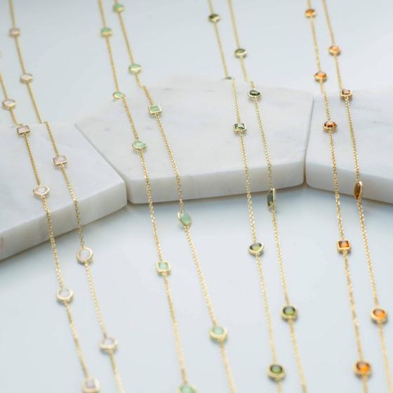 Design: Let the Venice necklace be your new wardrobe staple. Ideal for those who love delicate jewellery, this gemstone necklace features oval, rectangular and teardrop cut cabochons spaced on 120cm of fine chain. Available in a variety of colours, this necklace looks chic worn over a cashmere jumper & jeans or as the finishing touch to an evening look. Either wear long or wrap around to double up as a shorter length. Rose Quartz is the stone of universal love. It restores trust and harmony in relationships, encouraging unconditional love. Rose Quartz purifies and opens the heart at all levels to promote love, self-love, friendship, deep inner healing and feelings of peace. The Capri Collection is inspired by the glitz and glamour of the Italian Riviera combined with the understated elegance of European design. Finishing details include a lobster clasp, and size adjuster for ease of wear. Materials: 925 sterling silver, dipped in 22ct rosegold. Rose Quartz Style Notes: A great pairing to other pieces from the Capri Collection.Simple everyday stylingbirthstones Dimensions: Length 120cm Packaging: This item is presented in a Latelita London signature packaging Care Instructions: To maintain your jewellery, wipe gently with a damp cloth that is soft and clean. Do not soak in water. Avoid contact with soaps, detergents, perfume or hair spray.