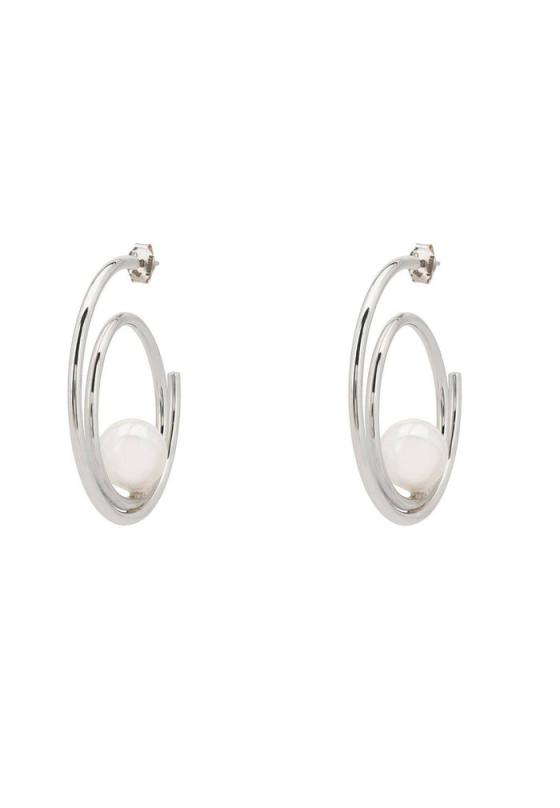 Design: These modern double hoop earrings are stylishly simple. The clever design of these earrings looks like a balancing act that defies gravity. A metallic hoop has a second smaller hoop inside where a single pearl balances at the base. These earrings look equally chic whether worn with jeans or a little black dress. Pearls are a traditional gemstone making them an idea finishing touch for any bridal or wedding attire. The birthstone for June and a celebratory stone for a 30th wedding anniversary make these the perfect gift for a loved one. Materials: 925 sterling silver. Pearl. Dimensions: Diameter: 4 cm. Pierced earring. Packaging: This item is presented in Latelita London signature packaging Care Instructions: To maintain your jewellery, wipe gently with a damp cloth that is soft and clean. Do not soak in water. Avoid contact with soaps, detergents, perfume or hair spray.