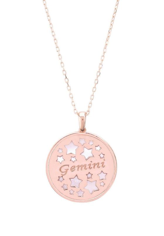 Materials: 925 sterling silver, dipped in 22ct rose gold. Mother of pearl. Handset white cubic zirconia. Finished with a lobster clasp, and size adjuster. Style Notes: Birthday gift ideas Evening wear, cocktail party and black tie. Simple everyday styling Ideal giftGemini – May 21 – June 20 Dimensions: Pendant: length 2cm, width 2cm Necklace length 40cm with 5cm adjuster to wear long or short. Packaging: This item is presented in a Latelita London black and gold printed jewellery box. Care Instructions: To maintain your jewellery, wipe gently with a damp cloth that is soft and clean. Do not soak in water. Avoid contact with soaps, detergents, perfume or hair spray.