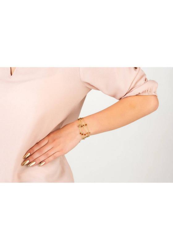 Design: Let the Naples bracelet be your new wardrobe staple. Ideal for those who love statement jewellery, this gemstone bracelet features multiple strands of round cut gemstones spaced on fine chains. With natural movement these colourful gemstones catch the light for added sparkle. Available in a variety of colours, the Naples bracelet is extremely versatile and can easily be styled from a daytime bohemian look to a demurer evening aesthetic. Finishing details include a lobster clasp, and size adjuster for ease of wear. The Capri Collection is inspired by the glitz and glamour of the Italian Riviera combined with the understated elegance of European design. One of the birthstones for November. Citrine is the yellow variety of quartz. Its warm colour is said to be a gift from the sun. For some, citrine is considered a healing gemstone, calming, soothing and comforting. It is also said to spark imagination and encourage fresh beginnings and prosperity. Materials: 925 sterling silver, dipped in 22ct gold. Citrine Style Notes: A great pairing to other pieces from the Capri Collection.Ideal giftSuitable for all occasionsbirthstones Dimensions: Bracelet length 16cm + 5cm size adjuster to fit most wrist sizesPackaging: This item is presented in a Latelita London signature packaging Care Instructions: To maintain your jewellery, wipe gently with a damp cloth that is soft and clean. Do not soak in water. Avoid contact with soaps, detergents, perfume or hair spray.
