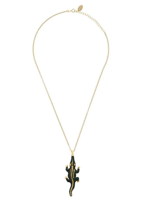 See you later alligator, in a while crocodile…. Keep an eye out for this unique and stylish crocodile inspired pendant necklace! It’s been handcrafted with 925 sterling silver and dipped in gold for a luxurious finish. The emerald green cubic zirconia stones add a pop of colour, and it comes with a adjustable 40-45cm chain so you can find the perfect fit. The pendant itself measures L4.5cm x W1cm and the necklace weighs 9.6 grams. The crocodile and alligator shapes have a rich symbolism in different cultures, often representing strength, fortitude, and protection. The crocodile is also associated with self-preservation and awareness. So when wearing the Crocodile Pendant Necklace Gold, you can be reminded of these powerful and positive messages. So whether you’re an animal lover or just someone who likes fun and fashionable jewellery, this Crocodile Pendant Necklace Gold is a great choice!
